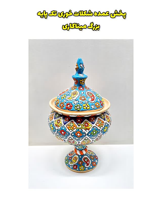 شکلات‌خوری تک پایه بزرگ میناکاری شده بر روی سفال، فراتر از یک ظرف ساده، یک اثر هنری کاربردی و نمادی از ذوق و سلیقه ایرانی است. این محصول که به‌طور تخصصی برای پخش عمده عرضه می‌شود، گزینه‌ای ایده‌آل برای هدایای شرکتی، سوغات گردشگری، تزئین رستوران‌های سنتی و فروشگاه‌های لوکس است.